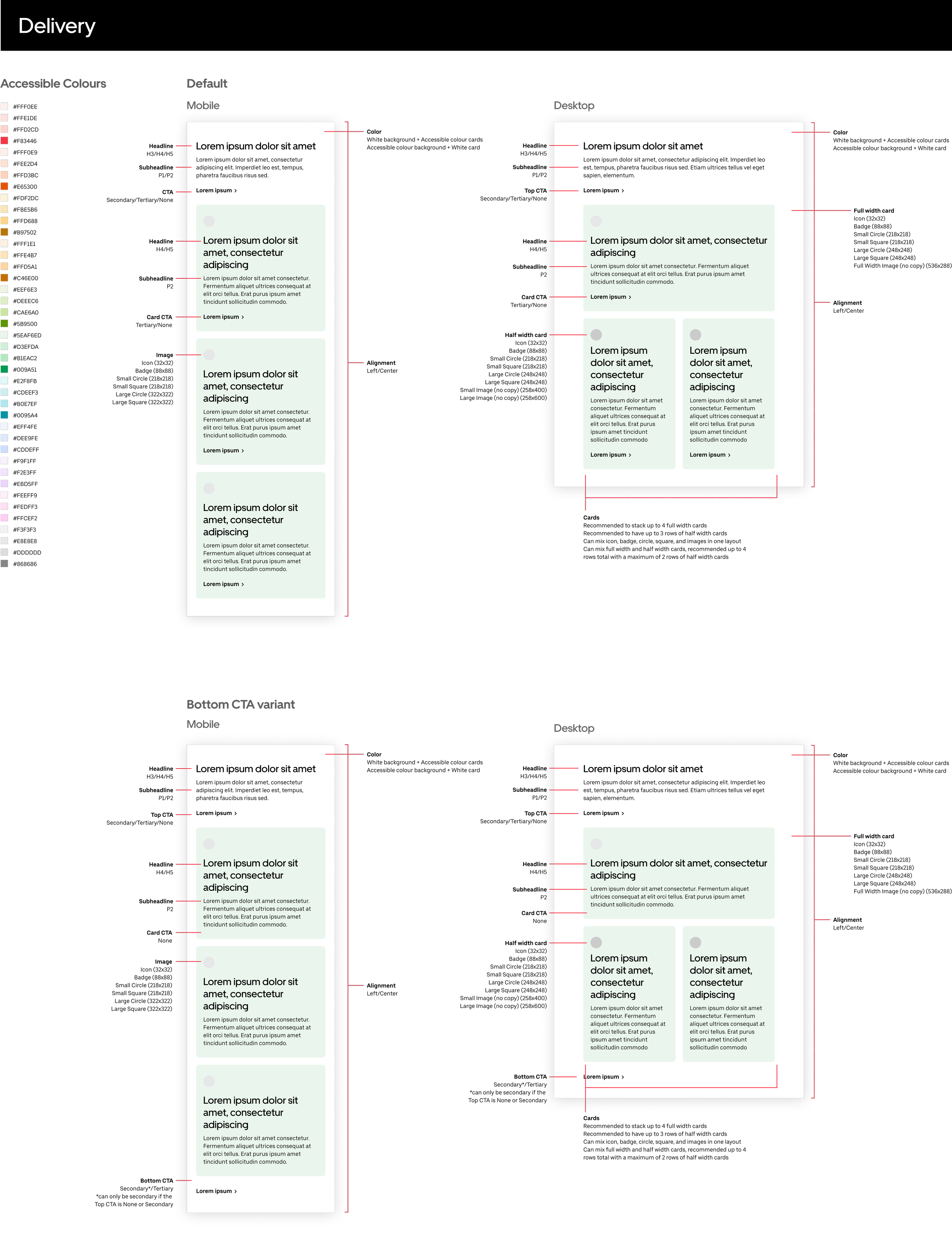 We wanted to reduce the content we would be sending to the development team to make it easier for them to understand. We were able to reduce the module from 250+ to 28, and wrote more extensive notes and rules as to what each module allows. We, again, built a new set of components that will be transferred to our existing component library as soon as these modules are available for the designers to use.